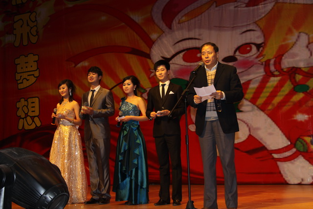 晚会开始由学院党委书记文峰老师致新年贺词。他在讲话中对过去一年学院在教育教学等方面取得的成绩作出了肯定,并指出2011年是充满希望与期待的一年,希望学院全体师生再接再厉共同为创造陕财职院的新辉煌而努力,预祝晚会圆满成功。