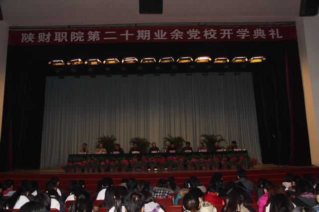 2010年11月17日下午,我院第二十期业余党校在大礼堂隆重举行了开学典礼。出席典礼的有学院党委书记文锋,党委副书记兼纪委书记刘文雅,学工部部长、学生处副处长雷旭,学工部副部长、学生处副处长王铁练,学工部副部长、团委书记宋波,信息工程系党总支专职副书记郭宝东,会计系党总支专职副书记陈红梅,工商管理系党总支专职副书记陈志宏,财政税务系党总支专职副书记崔斗。各支部确定的入党积极分子及发展对象1400余人参加了大会。会议由组织处穆天楠主持。