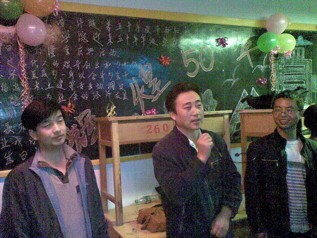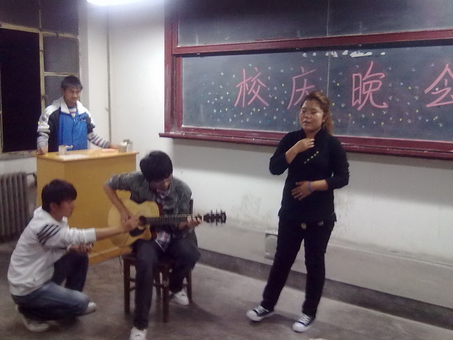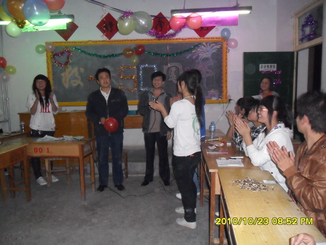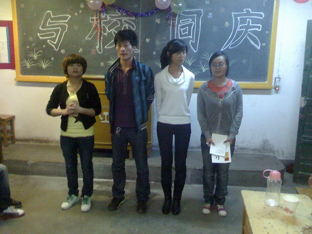 在此期间,南校区办公室的张朴老师、程军峰老师、吴高谋老师代表学院领导和南校区领导对同学们进行了亲切的慰问,同学们争先恐后的将小礼物送给敬爱的老师,以表达对学院老师的感恩之情。来到财管一班的时候,张老师对同学们表演的节目进行了表扬,同时深切地说:“同学们在外求学,陕财职院就是你们的家,希望你们在校期间健康成长,顺利成才,积极进取,为以后取得事业成功打下良好的基础!”;来到会电四班的时候,张老师、程老师、吴老师对同学们给予了殷切希望,张老师在同学们的阵阵掌声中唱了一首《同桌的你》,并祝同学们开心快乐!来到财管二班的时候,张老师又为同学们唱了一首《外婆的澎湖湾》,许多同学流出了激动的眼泪。程军峰老师对同学们说:“同学们,在财院要安心学习,努力学习,不断提高自身的能力,去回报社会,为学院争光,你们将是财院的骄傲!”在阵阵掌声、欢呼声和喝彩声中,晚会的气氛达到了高潮。
