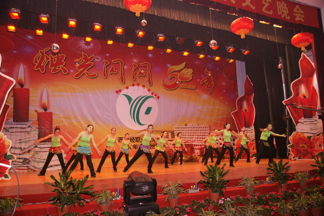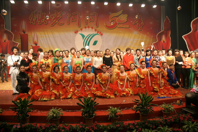 10月28日晚,学院礼堂团花锦族,彩灯闪烁,喜气洋洋。我院建校50周年系列活动的重头戏---文艺晚会在这里举行。