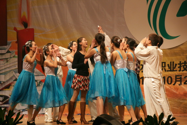 在六声厚重的钟声结束时,大幕徐徐拉开,第一个大型歌舞《盛世欢歌》凭借磅礴的气势、满台的艳丽、欢快的节奏、多变的形式、丰富的灯光,营造了喜庆祥和热烈的氛围。随后,四个主持人闪亮登场。11个节目依次展演,《有爱来相伴》、《同桌的你》、《阳光路上》、《课间辩论会》、《青春旋律》、《学子风采》、《春在陕财职院里》、《剪出财院新气象》、《感恩》、《我爱我家》、《梦想升起的地方》等节目,精彩纷呈,高潮迭起,不时赢得观众的热烈掌声。彩色的荧光棒、响亮的拍拍手,把整个礼堂装点得异常美丽、渲染得热闹非凡;台上演员表演投入,台下观众的文明热情与适时互动,不断地鼓励着演员同学们发挥着超常的演艺水平。