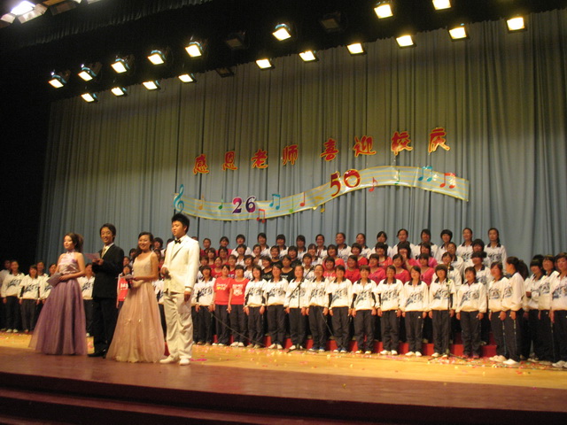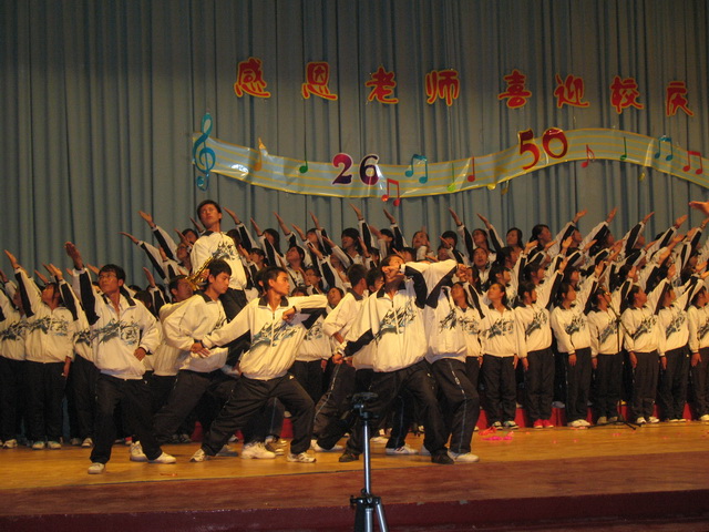 2010年9月10日晚,陕西财经职业技术学院2010级新生军训团在学院大礼堂举办了欢度教师节、喜迎建校50周年大型歌咏比赛。当晚,学院副院长刘建彪、学院副院长刘晓玉、学院党委副书记、纪检委书记刘文雅、学工部副部长宋波、信息工程系专职副书记郭宝东以及军训团所有领导、教官、指导员、同学们700多人出席了此次盛会。随后,军训团7支连队纷纷登台献艺,一展歌喉,他们用歌声表达了自己对老师的感恩,对学院的祝福。比赛的整个过程紧张、整齐、有序,参赛的同学们个个军姿优美,参赛的连队个个造型新颖、创意非凡,博得了观众的阵阵掌声。本次比赛评出歌咏比赛优胜连3个,包括一等奖连队一个,二等奖连队一个,三等奖连队一个。在比赛结束的时候,同学们都不约而同的为老师们唱起了《感恩的心》,最后学院领导在掌声与歌声中上台与大家合影留念。