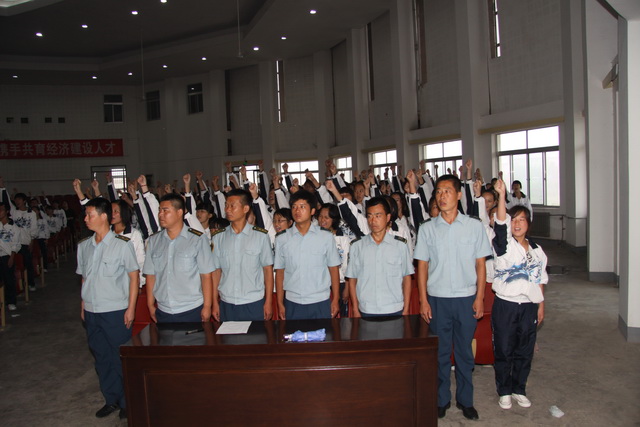 会上,刘建彪同志做了动员讲话,他从目前的国际形势讲到学生们今后的发展道路,言辞恳切,期望诚挚,最后他对军训团全体成员提出了几点要求,得到了大家阵阵的掌声呼应。接着教官代表和学员代表分别代表所有教官和所有参训学员表了决心。然后,各营宣读了挑、应战书,各营的挑、应战书将动员大会推向了高潮,三营的挑战书气势激昂,四营的应战书更是口号响亮,震彻整个礼堂。接着军训团副政委王铁练同志宣布了军训团纪律,大会的最后学院党委书记文锋同志代表学院向军训团授旗,鲜红的团旗在掌声中飘扬。最终大会在雄壮的中国人民解放军军歌中结束。