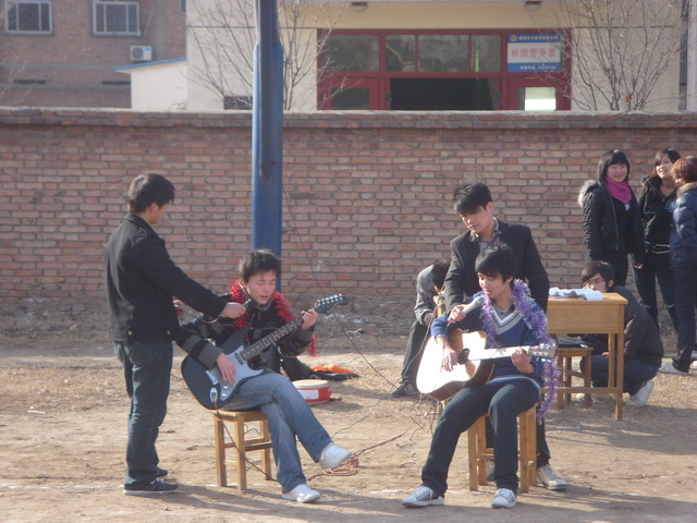 节目中,南校区办公室的张朴、程军锋老师为同学们演唱了歌曲《澎湖湾》、《敢问路在何方》,南校区的王娟和王小翠老师为同学们演唱了歌曲《阳光总在风雨后》,几位老师的助兴演唱得到了全场同学热烈的掌声。