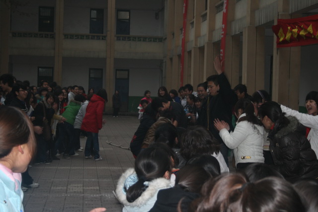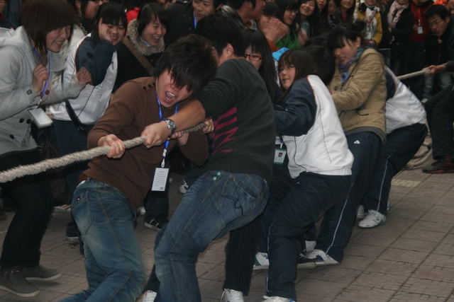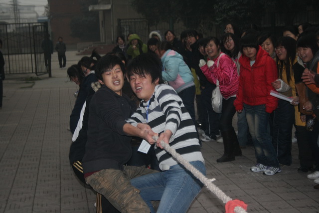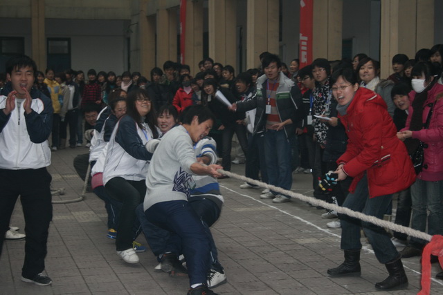 2009年12月10日下午陕财职院南校区学生分会在东教学楼前举行了一场振奋人心的拔河比赛,全院共有17支代表队参赛,南校区所有老师及同学都参加了本次活动。