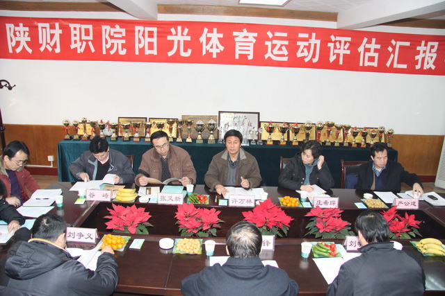 12月24日,教育厅评估专家组一行5人,怀着了解各高校阳光体育运动开展、落实情况的心愿,受命于教育厅的重托,冒着冬日的严寒,进入陕西财经职业技术学院,对我院阳光体育运动开展情况进行专项检查评估。