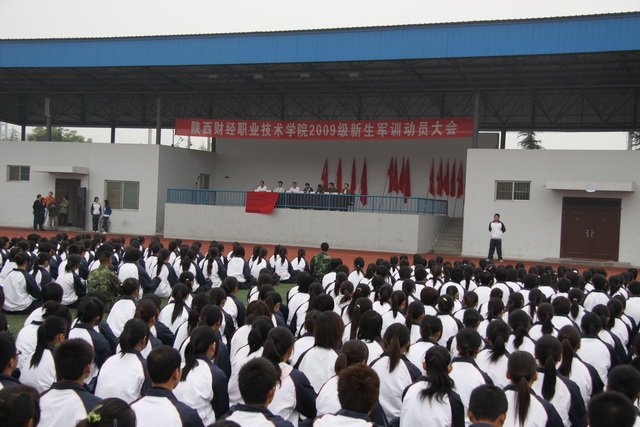 9月11日上午9时,陕财职院在塑胶运动场上隆重举行2009级新生军训动员大会及开训仪式。