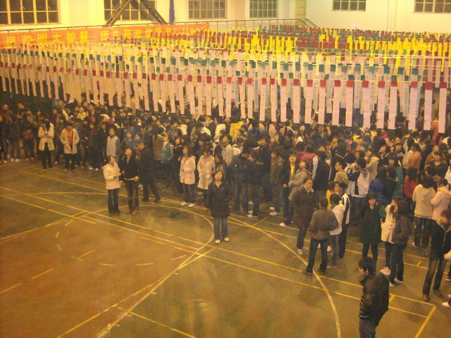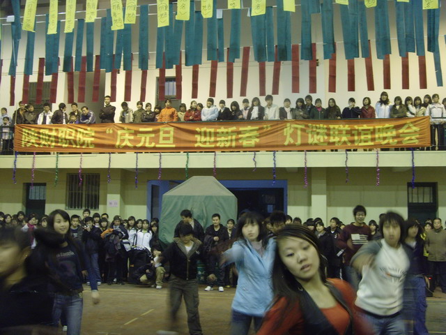 场内人头攒动,热闹非凡。晚上7:30时,应邀助兴的“院丝蕾舞社”的同学们首先表演了欢快劲爆的舞蹈,拉开了活动的帷幕,烘托了灯谜的的气氛。舞蹈过后,李启明致新年贺词,宋波宣布猜谜活动开始。1500多条灯谜从操场的上方缓缓下降,顿时整个场地灯谜林林,人声鼎沸。