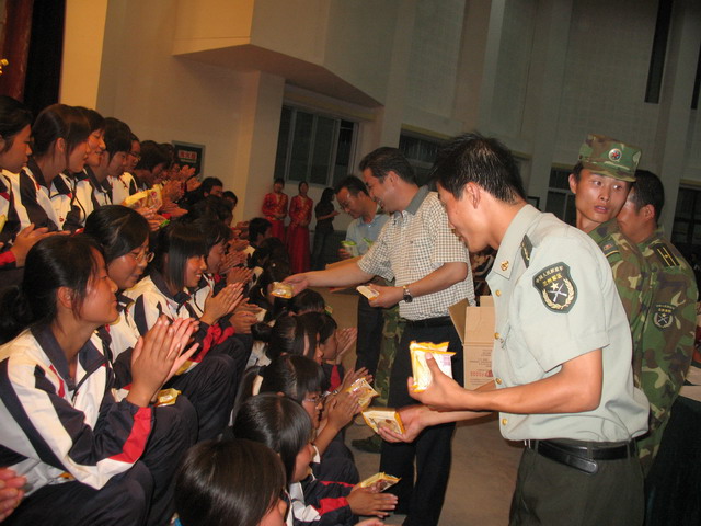 2008年9月14日晚,陕西财经职业技术学院08级新生军训团在学院大礼堂举办大型庆中秋歌咏比赛。当晚,学生处副处长雷旭同志、团委书记宋波同志以及军训团所有领导、教官、指导员、同学们近1700人出席了此次盛会。随后,军训团19支连队纷纷登台献艺,一展歌喉,以歌声歌颂祖国、赞美祖国。本次比赛评出歌咏比赛优胜连6个,包括一等奖连队一个,二等奖连队两个,三等奖连队三个。最后代表学院领导关怀的月饼伴着悠扬的进行曲,纷纷发到了同学们的手中,军训团政委王铁练同志以及军训团参谋长朱俊锋同志的即兴演唱将大会推向了高潮,同学们都表示这个中秋节是最难忘、最快乐也最有意义的一个中秋节,因为这个中秋节让他们感受到了陕财职院这个大家庭的温暖和关爱。