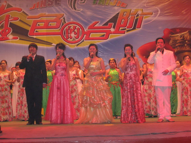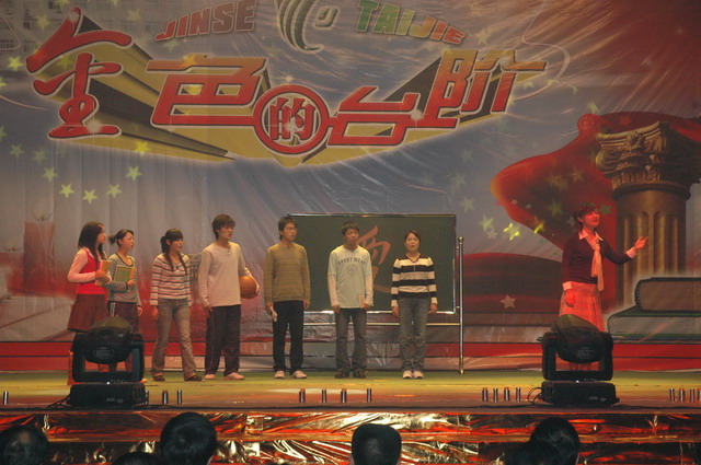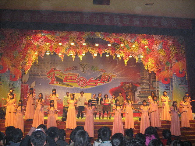 我院每年12月份都要举办一场“大学生素质教育成果展示文艺晚会”。本次晚会正值党的十七大召开不久,为了使学习贯彻党的十七大精神的形式和内容丰富多彩化,学院结合实际,紧紧围绕“金色的台阶”这个主题,以师生“学习贯彻党的十七大精神,推进大学生素质教育”为重点,集中展示了我院重视校园文化建设、师生多才多艺的素质教育成果,着重阐释了我院教师言传身教、矢志育人的不懈追求,充分体现了我院学生崇尚师德、感恩教育的良好素质。