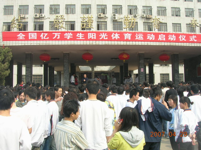 在 2007年4月29日上午10时至11时,由国家统一组织的“全国亿万学生阳光体育运动”正式启动,动员全国亿万学生集体锻炼一小时。为了形成全国联动、上下互动的氛围,国家体育总局、教育部、共青团中央、北京市政府在北京举行大型启动仪式。当日,陕财职院组织学生收听了中央人民广播电台直播的北京现场启动仪式,并在学院举行了启动仪式。启动仪式由体育部教师主持。