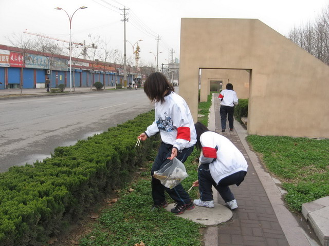 随后,服务实践活动的第一站是到文林路绿化带清理垃圾。队员们有的提着塑料袋,将果皮、纸团、食品包装等拾起,装进垃圾桶;有的擦洗栏杆,清理枯枝。同学们满脚是泥,周身是灰,坚持劳动,顺利完成清理任务。活动的第二站是到院团委的教育基地--咸阳市秦都区“夕阳红”托老中心,开展敬老奉献爱心活动。志愿者们为30多位孤寡老人整理内务,打扫卫生,清洗床单被罩。劳动结束时,同学们给老人们谈校园生活,老人们给学生讲历史往事,他们还即兴发挥,载歌载舞。欢歌笑语充满了静寂的庭院,春日的阳光照红了老人们的脸庞。