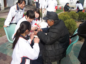 最后一站,他们到咸阳市秦都区星光青年之家“夕阳红”托老中心,开展“敬老奉献”活动。他们为30多位孤寡老人整理内务,清洁室内户外卫生,清洗床单被罩。劳动结束后,同学们给老人们谈校园生活,老人们给同学们讲历史往事,他们还拉家常,唱歌曲。欢歌笑语充满了平日静寂的庭院,驱散了老人心中的孤独与寂寞。