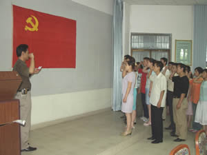 最后,举行了新党员入党宣誓仪式。30余名新近入党的同志面对党旗,庄严进行了宣誓;老党员们面对党旗肃立,重温了入党誓词。大会在雄壮的际歌声中闭幕。