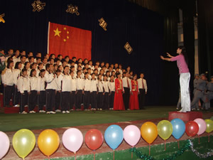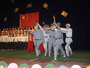 最后,经评委会评审,由南校区师生合唱的《今天是您的生日》、《校园之歌》和01—5会电2班的表演的《西班牙斗牛士》获一等奖;05—3会电4班的《竹楼情歌》、《Hip top》、《不如跳舞》等获二等奖;《军中姐妹》等五个节目获三等奖。演出结束后,学院领导走上舞台与全体学生演员合影留念。