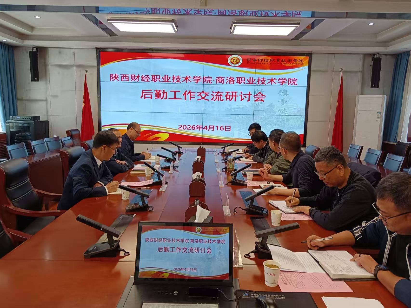 为进一步加强校际后勤管理经验交流,提升后勤服务保障水平,2026年4月16日,商洛职业技术学院副院长何衍忠、总务处处长李世毅、伙食管理科科长贺开平一行3人来到我校,就后勤管理工作进行专题交流。我校副校长王勇、总务处处长达航行、副处长何宏波、陈玉涛以及膳食科、动力科相关负责人热情接待。双方通过座谈交流和实地走访,围绕后勤服务中的重点问题进行了深入探讨。