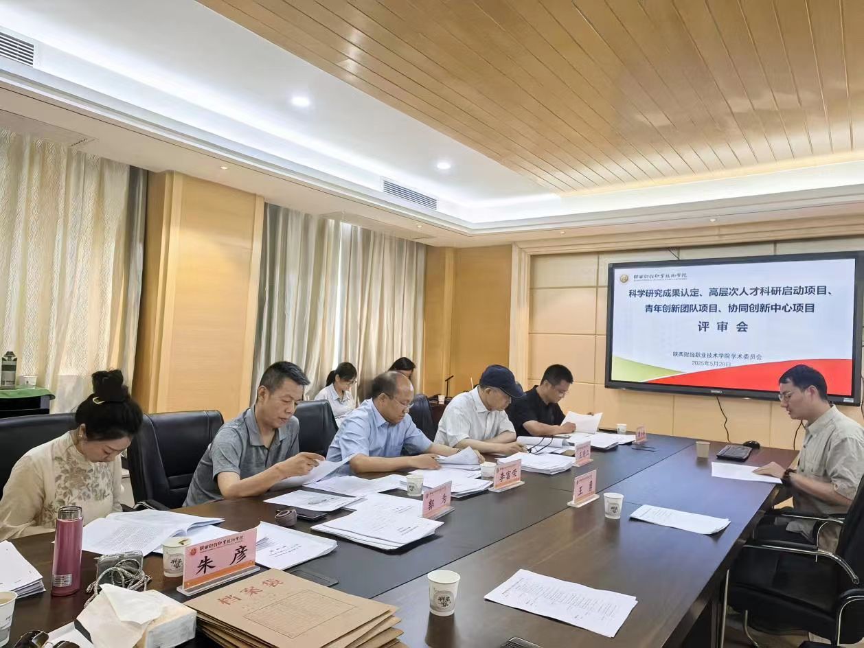 2025年5月28日下午,我校学术委员会在实训楼2楼会议室召开校级科学研究优秀成果评审及2024年度已获各级党政机关研究优秀成果奖认定、2025年度高层次人才科研启动项目、青年创新团队、协同创新中心等项目评审会。此次会议邀请了校学术委员会校外委员、渭南师范学院经管院院长李富荣教授、陕西省职教学会副会长王晓江教授、陕西省教科院职教中心郭为主任、西北政法大学朱彦教授、西安航空职业技术学院教务处处长龚小涛教授等作为评审专家。副校长王勇出席会议并讲话,会议由学术委员会秘书长操龙升主持。