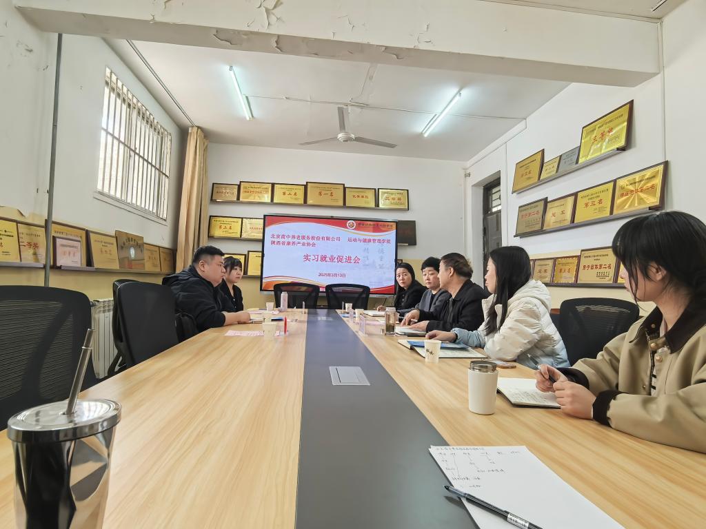 为进一步促进康养专业人才培养、推动学生实习就业的顺利对接,2025年3月15日下午,运动与健康管理学院与北京荷中养老服务股份有限公司、陕西省康养产业协会共同举办了实习就业促进会。会议在运动与健康管理学院会议室召开,北京荷中养老服务股份有限公司总经理崔博闻、陕西省康养产业协会教培部主任李孟雅出席会议,运动与健康管理学院院长岳荣、康养专业群负责人赵小义及卫生康复保健教研室全体教师参加了会议,会议由办公室主任薄阿维主持。