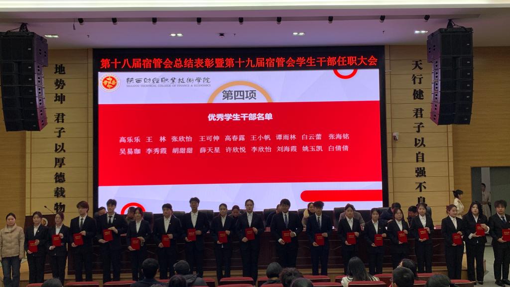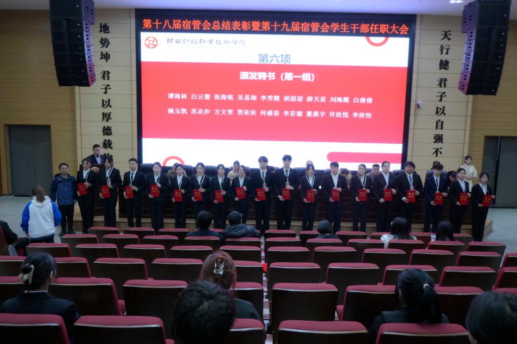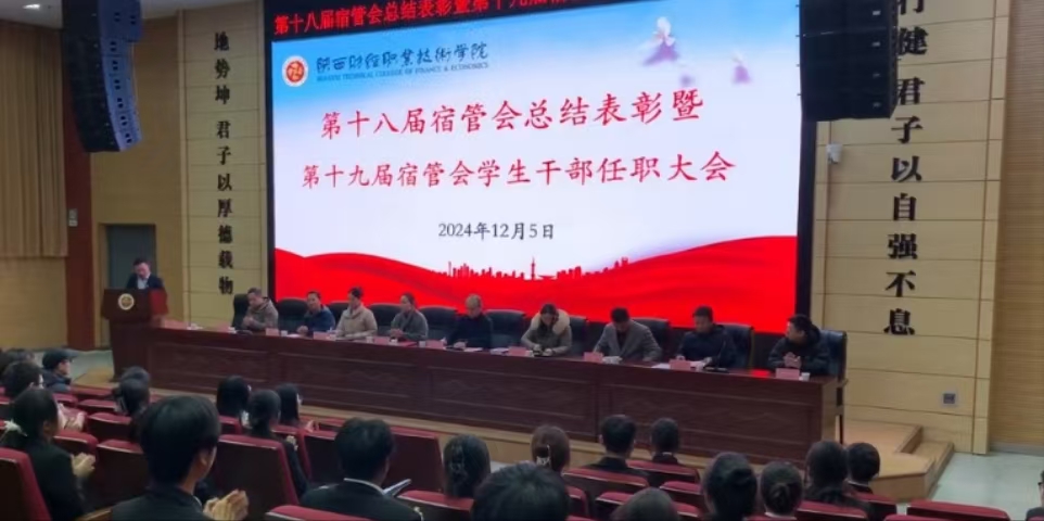 2024年12月5日下午16:00,第十八届宿管会总结表彰大会暨第十九届宿管会学生干部任职大会在学术报告厅隆重召开。参加此次大会的有学生工作处处长乔晶策,学生工作处各科室科长,各二级学院学生科科长,各公寓楼代表,校,院学生会代表、各社团组织及学生代表。此次大会旨在总结过去一年宿管会的工作,表彰优秀学生干部,并对新一届宿管会学生干部的任职进行宣布。