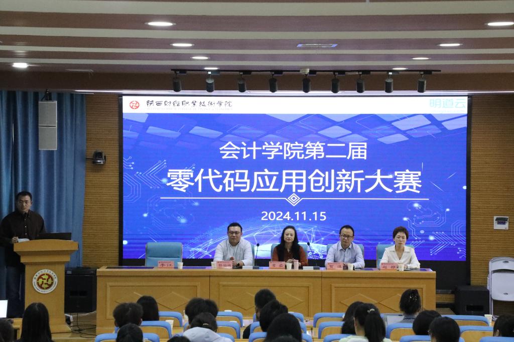 2024年11月15日,陕西财经职业技术学院会计学院与上海万企明道软件有限公司共同举办会计学院产业学院第二届“零代码应用创新大赛”。会计学院院长常茹、党总支书记贺适、学生科科长赵静、学生科副科长张璐和刘歆语、大学生创新创业大赛指导教师黄敏、产业学院负责人薛媛,以及明道云西北区域负责人李江、华为ICT产业学院倒导师郭伯域担任评委。大赛由会计学院校内实践管理中心主任刘金鹿主持。