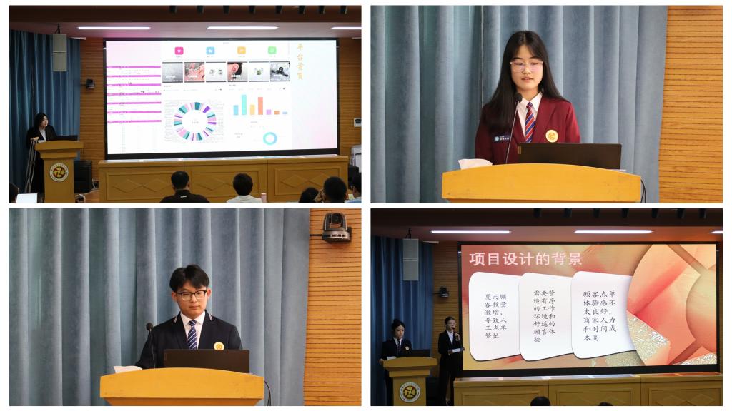 本次大赛共6支队伍参赛,在前期准备中,各团队均从日常生活的所需出发,进行充分调研和分析,借助明道云零代码平台完成应用设计和搭建;在现场汇报时,借助PPT、视频、网站展示了用的设计背景、设计目的、解决问题、搭建步骤、小组分工等内容。赛后点评时,明道云企业代表李江老师和郭伯域老师分别从创新性、可行性、延伸性三个方向对各团队作品进行点评,并提出了改进建议。最终经过评审和现场观众的投票,决出一等奖1名、二等奖1名、三等奖2名、优秀奖2名,由会计学院和明道云的各位评委颁发证书、奖金牌和奖品。