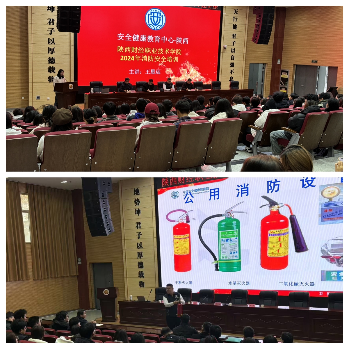 四是开展讲座,强化演练。11月18日。保卫处联合学生处,应急管理学院邀请陕西安全健康教育中心王思远主任到校开展消防安全专题讲座。王主任以丰富的专业知识和实践经验,围绕消防常识、防火技巧、灭火方法及火场逃生策略和灭火器使用要领等多个方面进行了深入讲解和实操演示。他结合生动案例,直观展示火灾发生的常见原因,如电器设备使用不当、易燃物违规存储、人为疏忽等,进一步强化师生对火灾的危害性与预防火灾的重要性认识,激发大家防患于未然的紧迫感和责任感。应急管理学院党支部副书记王华强调,进入11月份后是火灾的高发时期,希望大家广泛学习灭火基本方法、逃生基本技能和防火基本知识,形成“人人受到宣传教育,人人增强防范意识,人人掌握基本常识”的良好局面,把各种消防安全隐患消除在萌芽状态,共创平安和谐校园。