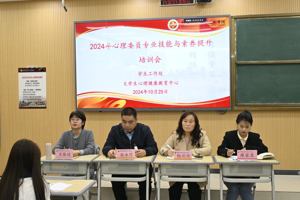 为了进一步健全我校心理危机预防与干预体系,落实“校院班寝人”五级预警机制,充分发挥朋辈力量在学生心理健康教育工作中的作用,我校于10月25日下午,组织开展了2024年秋季首场新生心理委员培训会。学生工作处副处长袁永彦、大学生心理健康教育中心和二级辅导站相关老师、127名新生心理委员参加会议。本次培训在高新校区和校本部同时进行,分别由大学生心理健康教育中心主任杨欢欢、专职教师王依姣担任主讲。