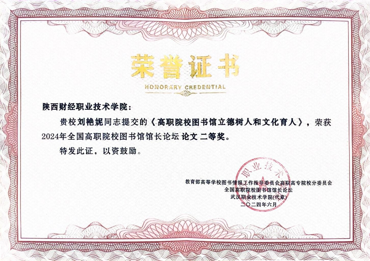 我校图书馆副馆长刘艳妮一行3人参会。刘艳妮的论文《高职院校图书馆立德树人和文化育人》荣获2024年全国高职院校图书馆馆长论坛论文二等奖。