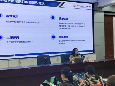 培训会上,常茹从国家发展战略、产业现实需求、行业数字化转型以及现代职业教育体系建设等方面,以大数据与审计专业为例分析专业教学标准制订的背景,提出专业教学标准的颁布制定与实施对于全面提高教育质量的重要意义。从数据与审计专业教学标准研制的组织结构、指导思想以及调研工作等向学员讲授大数据与审计专业教学标准研制的基本情况,着重讲解专业教学标准的培养目标与规格、课程设置与学时安排、师资队伍建设以及教学条件与资源等核心内容与关键因素。最后,以我院大数据与审计专业教学标准实践为例进行经验分享,提出教学标准实施过程中有效对策与建议。