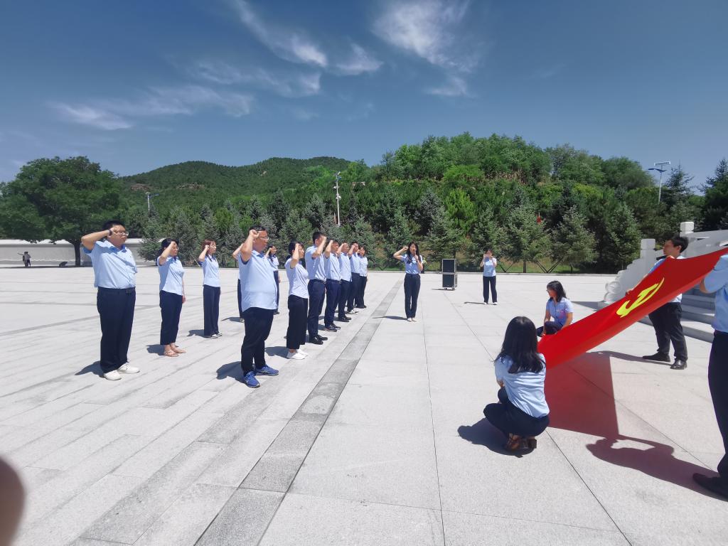 全体党员在革命纪念碑前,面向党旗重温入党誓词,表达了对党无限忠诚和为共产主义奋斗终生的坚定信念。