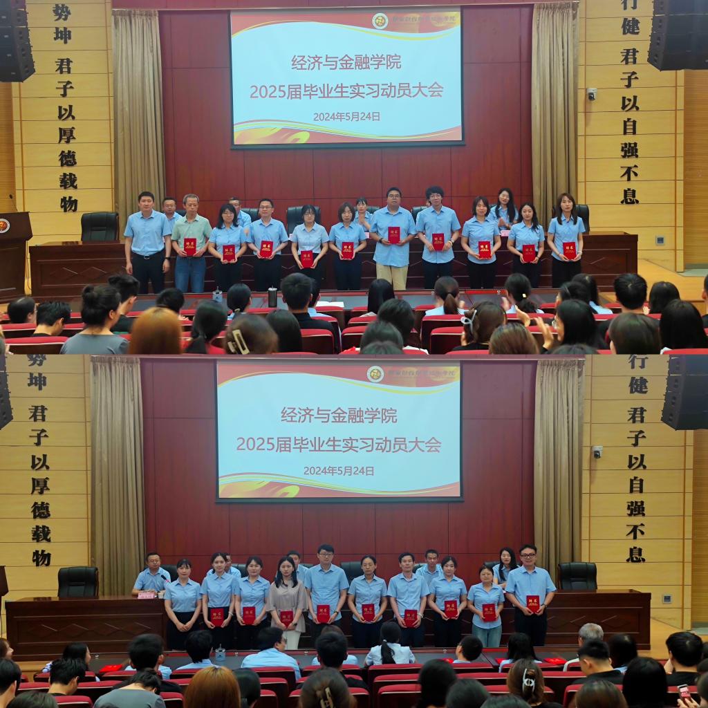 5月24日下午,经济与金融学院于学术报告厅召开了2025届毕业生实习动员大会。学院院长陈冬、副院长杜逸冬出席会议,全体教职工以及全体2025届毕业生参加。会议由教学科科长徐文瑞主持。