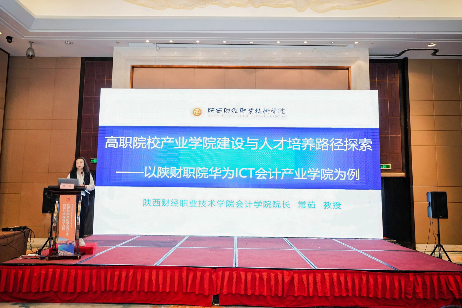 会上,常茹以“高职院校产业学院建设与人才培养路径探索——以陕财职院华为ICT会计产业学院为例”为主题,剖析了当前财务数字化转型的机遇与挑战,并以我校华为ICT会计产业学院为例,分享了产业学院的建设路径、阶段成果和未来规划。借助产业学院的运营构筑校企双方合作新模式,实现产业链与教育链有效对接,变革职业院校人才培养模式,加快“三教改革”的深入发展。