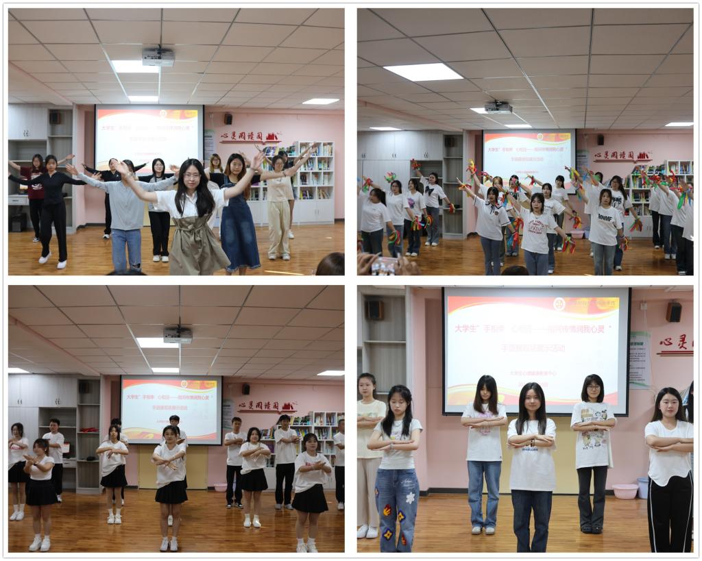 为了进一步推进我校心理育人工作,培育大学生自尊自信、理性平和、阳光向上的积极心态。根据我校心理育人季活动的总体安排,2024年5月10日下午,我校大学生“手相牵 心相连——指间传情润我心灵”手语操校级现场展示活动在大学生心理健康教育中心心理团辅室举行。活动特别邀请兼职心理教师魏子哲、王佳、赵肖和贾文平老师担任评委。活动由大学生心理健康教育中心专职教师王依姣主持。