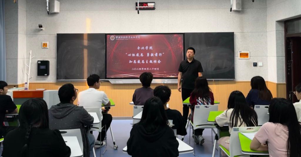 为增强资助政策的宣传力度,强化资助工作的育人效果,帮助学生体验感恩情感,践行感恩行动,常怀感恩之心。4月28日,全北学院各班级利用晚自习时间开展“心怀感恩,勇毅前行”感恩教育主题班会。
