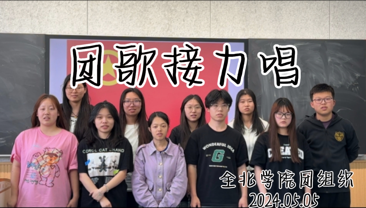 为加深同学们对共青团的认识,增强广大团员的责任感、使命感,展现青年学子热爱祖国、朝气蓬勃、健康向上的精神风貌,全北学院开展了“担当强国使命·畅享嘹亮新歌”团歌接力活动,本次活动展示了我院团员青年的青春风采,让同学们在歌声中回顾团的历史,坚定信念,拥护团,团结团。