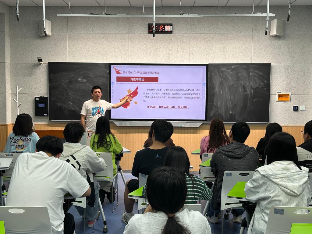 为了更好地引领广大团员青年继承和发扬“爱国、进步、民主、科学”的五四精神,在强国建设、民族复兴的新征程上谱写更加绚丽的青春华章,全北学院各团支部5月6日组织开展“青春为中国式现代化挺膺担当--青春之我,创造青春中国”主题团日活动。全北学院学生管理科副科长孟琰峰深入23全会计1班团支部指导开展团日活动,团日活动由各团支书主持。此次主题团日活动面向全体团员,通过一系列内容丰富、形式多样、贴近青年的活动,引导广大团员和青年厚植奋斗底色、唱响青春旋律。
