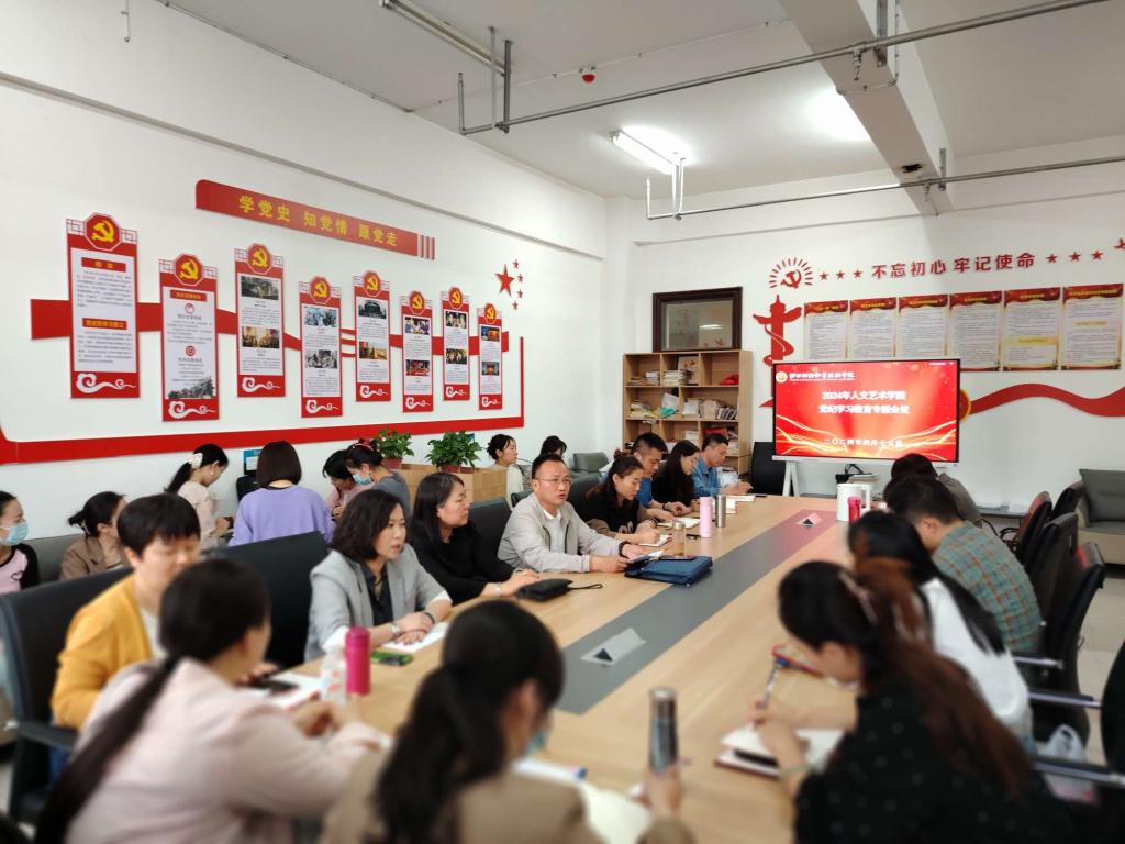 4月15日下午6时,人文艺术学院党支部在教学楼二楼会议室召开党纪学习教育专题会议,学院全体党员参会。人文艺术学院党支部书记宋波主持会议。