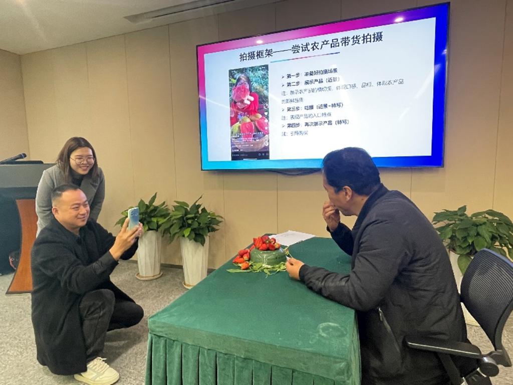 培训中,团队围绕农产品营销、品牌建设等核心主题,结合西咸新区“都市农业”的特色,以及粮、菜、茶、果等区域农业产业,讲授了品牌策略、价格策略、分销策略以及新媒体营销策略等多个方面内容。同时,团队还分享了国家乡村振兴相关政策,农户能够更好地理解国家对于农业和乡村发展的支持政策,从而更有信心和动力去实施科学的经营管理策略,提升自身的生产效率和经济收益。特别值得一提的是,本次培训还特别加入了短视频拍摄剪辑的实践训练,帮助农户掌握新时代下的营销工具,提升产品的市场竞争力。