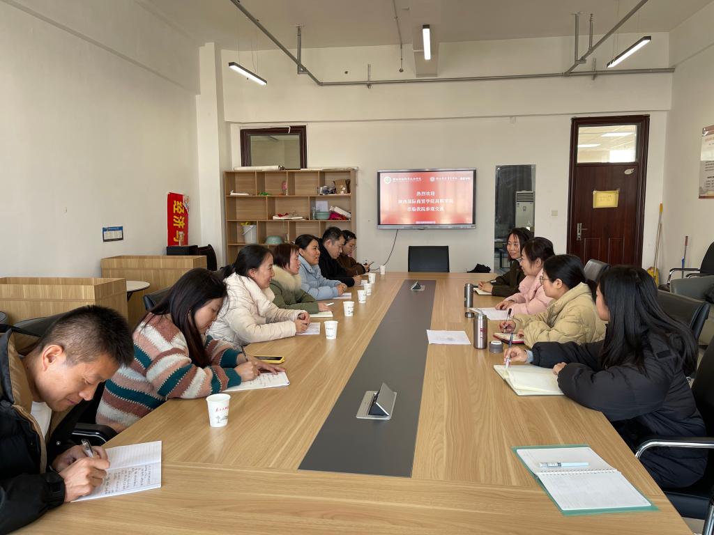 为深入学习兄弟院校的先进做法及教学理念,加强学术交流,提高教学质量,1月8日下午,陕西国际商贸学院巩敏焕副教授等一行5人赴我校交流调研。此次交流会旨在通过互相交流,了解对方学校的教学模式和教学成果,促进双方学校的合作与发展。