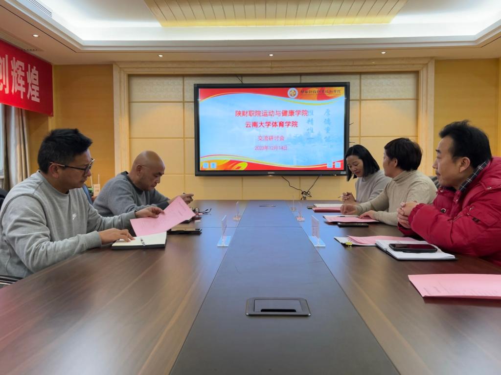 为提升学校体育工作建设,加强校际之间学习交流,12月14日,云南大学体育学院书记孙权、综合办公室主任杨孟庄一行人来我校调研交流。运动与健康管理学院院长岳荣、党支部书记张朴、办公室主任薄阿维、教师代表郭莎参加座谈,会议由薄阿维主持。