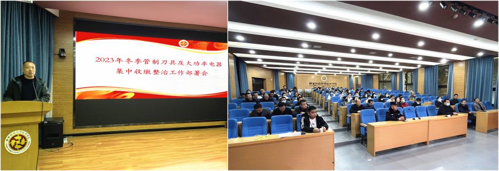 检查开始前,全体人员在继续教育培训厅召开部署动员会,李健兵详细解读2023年冬季管制刀具及大功率电器集中收缴工作方案,强调学生公寓的安全关系到学校的稳定和发展,各二级学院要高度重视,密切配合,积极投入到本次安全检查工作中来。针对学生住宿比较分散的特点,各二级学院将参与清查的工作人员安排好、组织好,清查中注意方式方法,确保不走过场,同时要对学生进行不购置、私藏或携带管制刀具和不购置、使用大功率违规电器的教育,引导学生充分理解此次清查工作,并自觉配合。清查中发现的违禁物品要予以收缴,并按照《学生宿舍清查管制刀具及大功率违规电器情况登记表》的要求做好记录。清查工作结束后,由负责人将检查登记表及没收的违规用品当天交到公寓管理科集中统计上报。