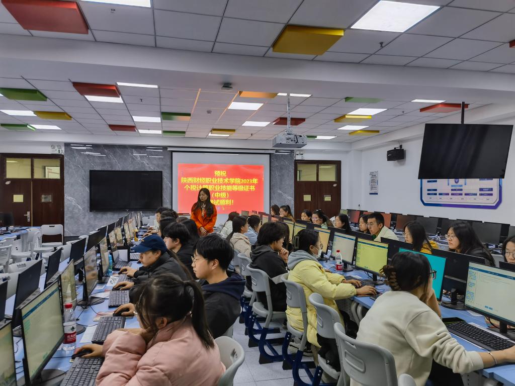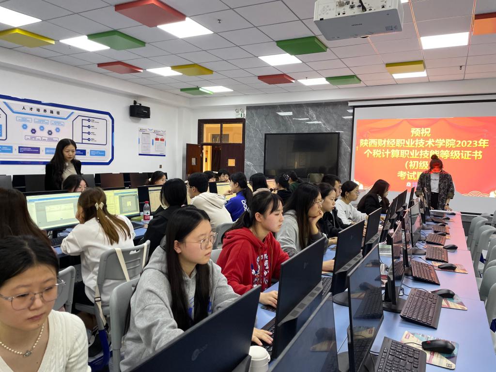 作为教育部1+X个税计算职业技能等级证书试点院校,陕西财经职业技术学院已于2022年被该证书评价组织浙江衡信教育科技有限公司授予“全国十佳试点院校”荣誉称号,同时荣获“书证融通成果奖”和“优秀组织奖”。为了顺利完成2023年度个税计算职业技能等级证书考试,会计学院成立考试领导小组,精心组织培训及考务工作。考前培训由李君梅、王佳丽、王莹、王曼娟等老师负责,培训形式为“线上+线下”相结合的形式。考试过程中,监考教师认真履职,考场秩序井然。此次考试得到学院领导、浙江衡信教育科技有限公司、教务处、实训中心、网管中心、总务处等部门的大力支持。