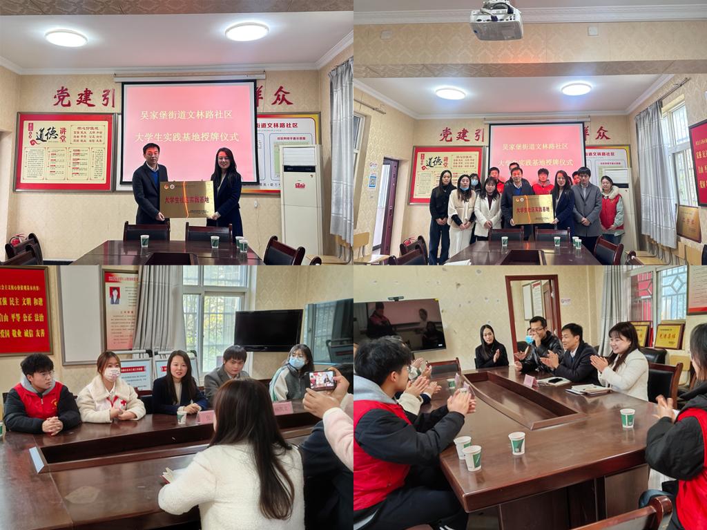 11月22日,我校团委在吴家堡街道文林社区举办了“大学生实践基地”授牌仪式。吴家堡街道党工委副书记刘思扬,文林路社区党支部第一书记张蓓,吴家堡街道文林路社区党支部书记、居委会主任田军阳,我校团委书记张洁,团委干事杨凯文以及社区工作人员,校学生会志工部各部门负责人参加仪式。