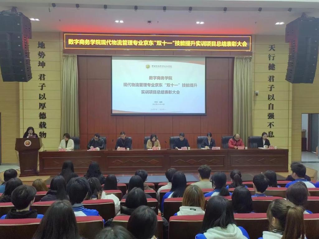 2023年11月14日,数字商务学院在学术报告厅举行现代物流管理专业京东“双十一”技能提升实训项目总结表彰大会。数字商务学院全体处科级干部,京东物流集团西北区人力资源高级经理、校企合作总经理白光泽,京东物流陕西分公司园区人力资源经理杨正龙,现代物流管理专任教师以及2022级现代物流管理专业全体学生参加此次会议。会议由现代物流管理专业负责人刘莹主持。
