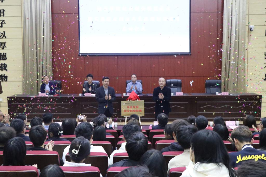 为进一步落实立德树人根本任务,增强学生就业创业意识,助推校政企多方合作协同发力,促进我院就业工作高质量发展。10月27日下午,经金学院就业创业联盟成立暨首届大学生就业创业与职业生涯规划活动月启动仪式在学术报告厅隆重召开。学院党委委员、副院长雷旭,学生工作处处长乔晶策、副处长王刚,经金学院党总支专职副书记张力,校友会秘书长曹崇禧,校内、校外导师,学院全体无课教师及学生参会。