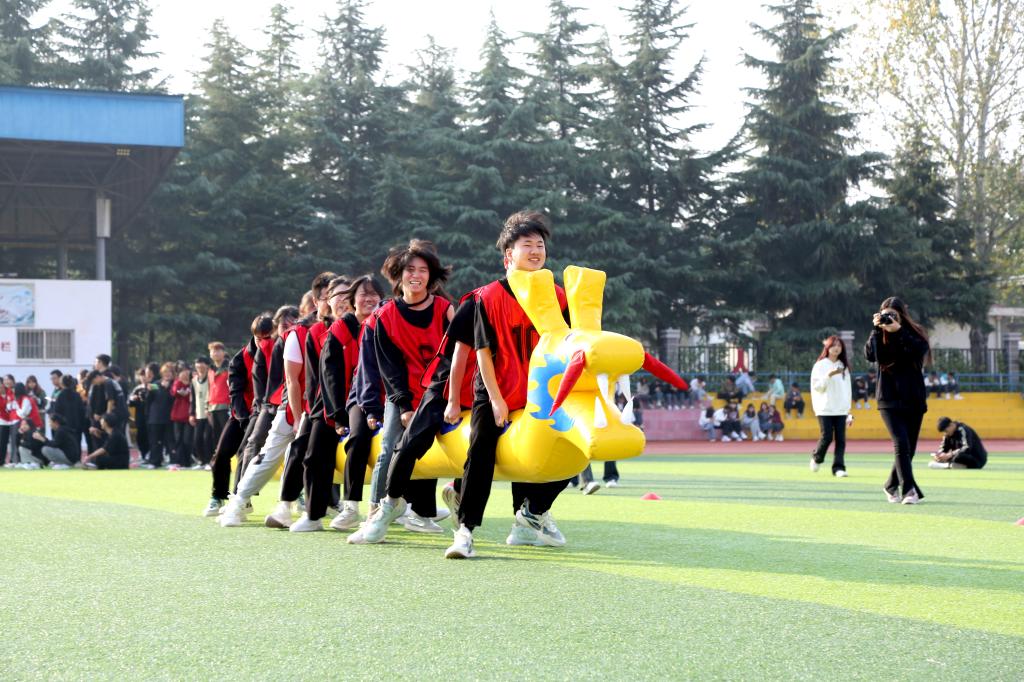 本次趣味拓展运动会设有:板鞋竞速、旱地龙舟、运转乾坤、袋鼠跳四大项目,共有7支参赛代表队展开激烈角逐。比赛现场气氛热烈,喝彩声接连不断,同学们团结拼搏、奋勇争先,喊着响亮的口号,迈着整齐的步伐,洋溢着青春的热情,向着胜利与快乐出发,在田径场上留下了一道道靓丽的风景线。整个比赛秉持着“友谊第一、比赛第二”的原则,秩序井然,成绩喜人。本次运动会共有120个班140名运动员参加比赛。经过运动健儿的顽强拼搏,共决出奖牌 7 枚,一等奖 1 个;二等奖 2 个,三等奖 4 个。