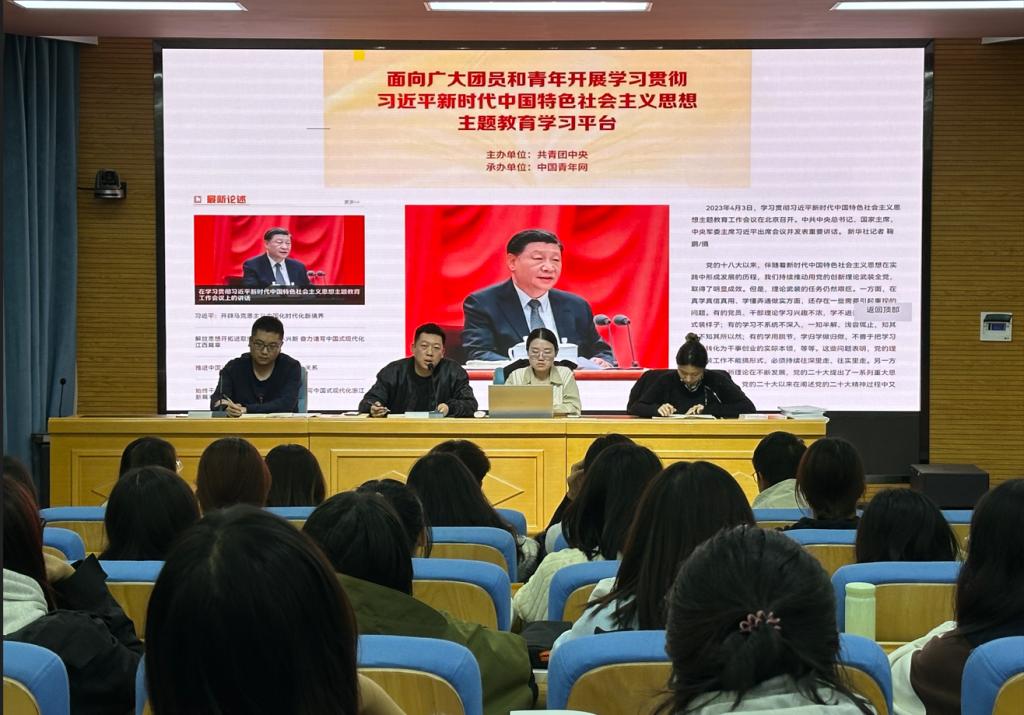 随后,学生代表2023全会计1班学生王梦权带领大家阅读了《习近平著作选读》中第二卷《培养德智体美劳全面发展的社会主义建设者和接班人》的内容,文章强调:培养什么人,是教育的首要问题。推进教育现代化不能忘记初心,要健全全员育人、全过程育人、全方位育人的体制机制,不断培养一代又一代社会主义建设者和接班人。要在坚定理想信念、厚植爱国主义情怀、加强品德修养、增长知识见识、培养奋斗精神、增强综合素质上下功夫。根据领读内容,各班班主任组织各班学生进行了小组讨论,并由学生代表2023全会计1班孟鲁、2023全会计2班李亦雅进行发言陈述自己对于“如何做一名合格的共青团员”、“如何让自己成为一名合格的社会主义建设者和接班人”等相关问题的感悟。