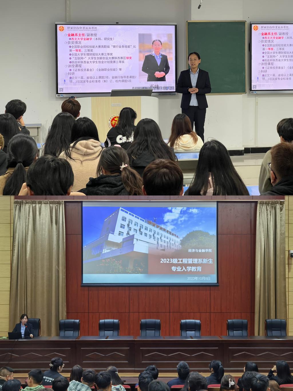 会后,金融系与工程系各位教师进班开展专业教育活动,对专业基本情况、办学特色、教师团队、实习实训、校园活动、技能竞赛、就业方向、行业发展等方面进行了详细介绍,并设置优秀毕业生发言和提问答疑互动环节,学长学姐与新生们分享了在校学习生活心得,各位老师针对未来的学习成长和工作生活向新生寄语,同新生进行了亲切交流,新生们积极踊跃参与互动,活动现场气氛热烈。本次专业教育活动的开展,让新生对所学专业有了基本的认识和了解,为后续的专业学习奠定了基础。