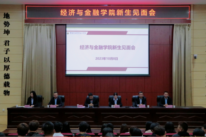 10月8日下午,经济与金融学院于学术报告厅召开了2023级新生见面会。学院副院长杜逸冬、专职副书记张力、全体行政人员及任课教师、老生代表以及全体2023级新生参加。大会在雄壮激昂的国歌声中拉开序幕,全体师生起立,共唱国歌。