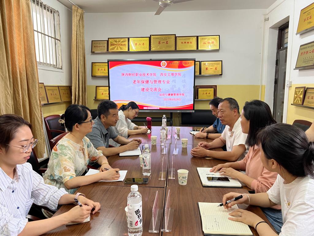 2023年6月28日,西安文理学院经济管理学院董冠华副院长、马云超博士一行就老年保健与管理专业建设、实训实验室建设、技能竞赛备赛、产业学院、校企合作等方面工作来我校进行调研交流。运动与健康管理学院院长李健兵、办公室主任薄阿维、专业负责人赵小义教授与老年保健与管理专业课教师参加了座谈。
